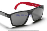 Стильные солнцезащитные очки, внешняя часть оправы черного цвета, внутренняя — красного. Неброскии? логотип Audi Sport на внутреннеи? стороне дужки, логотип gloryfy на внешнеи? стороне дужки. Серые стекла с солнцезащитным фактором 3, УФ-400, с футляром. Изготовлены в Австрии.