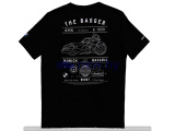 Классический круглый вырез горловины. Крупный рисунок с надписью «THE BAGGER» на спине. Маленький принт спереди с надписью «BAGGER» слева на груди. Логотип BMW на левом рукаве и надпись BMW Motorrad на правом. Цвет: черный. Материал: 100% хлопок.