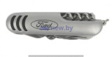 Нож многофункцональный Ford. Материал: металл. Размеры: 8,9 х 2,4 х 2,0 см. Многофункциональный инструмент: нож, консервный нож, открывалка, штопор, мини-нож, отвертка плоская, отвертка крестообразная, пила, ножницы, пилочка. Гравировка логотипа Ford. Упакован в подарочную коробочку.
