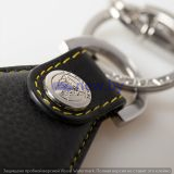 Брелок Jaguar из высококачественной мягкой кожи. С карабином и кольцом для ключей. Гравировка "Jaguar" на кольце. Контрастная прострочка желтыми нитками по периметру. Металлический значок-кнопка с эмблемой Jaguar на фронтальной части и тиснение "Jaguar" на обратной стороне. Цвет: черный. Артикул: 50JDKR723BKA