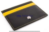 Кожаный футляр Jaguar с четырьмя отделениями для кредитных карт и центральным универсальным отделением, например, для банкнот. Контрастная прострочка желтыми нитками по периметру. Металлический значок с эмблемой Jaguar на одной стороне и тиснение "Jaguar" - на другой. Основной цвет: черный, детали из кожи желтого цвета. Артикул: 50JDLG717BKA