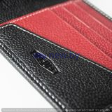 Часть истории в вашем кармане! Тонкий черный кожаный кошелек имеет бордовую отделку на внутренней стороне, с белой строчкой и несколькими отделениями для кредитных карт. Исторический логотип в форме ромба с тиснением изнутри. Металлический логотип-кнопка снаружи.