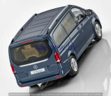 Микроавтобус Mercedes-Benz V-Class в синем цвете "navy blue". Модель олицетворяет концепцию комбинации двух миров - предлагая высочайшую функциональность микроавтобуса и одновременно типичные черты пассажирского автомобиля Mercedes. Модель установлена на подставке с надписью и поставляется в упаковке дизайна Mercedes-Benz.
